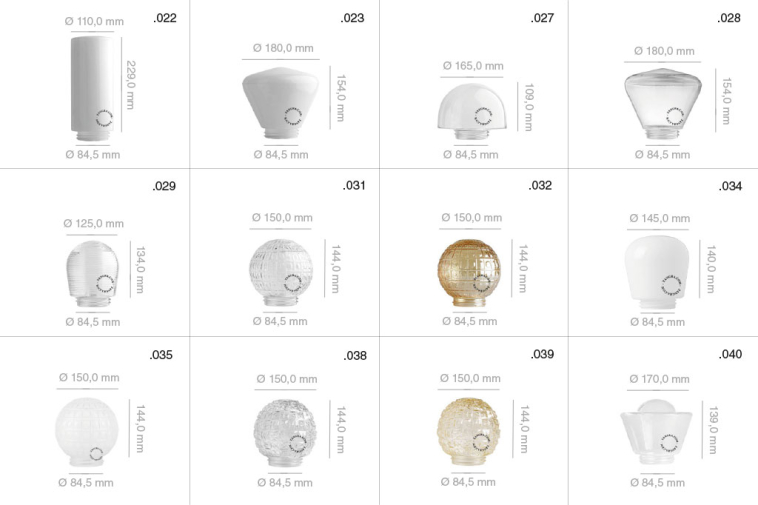 * globes/shades size M: Ø84.5mm screw thread