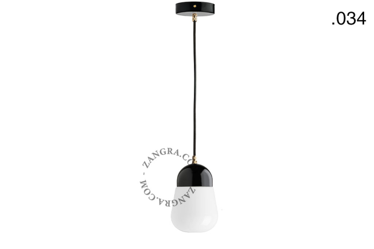 black porcelain pendant light - glass shade